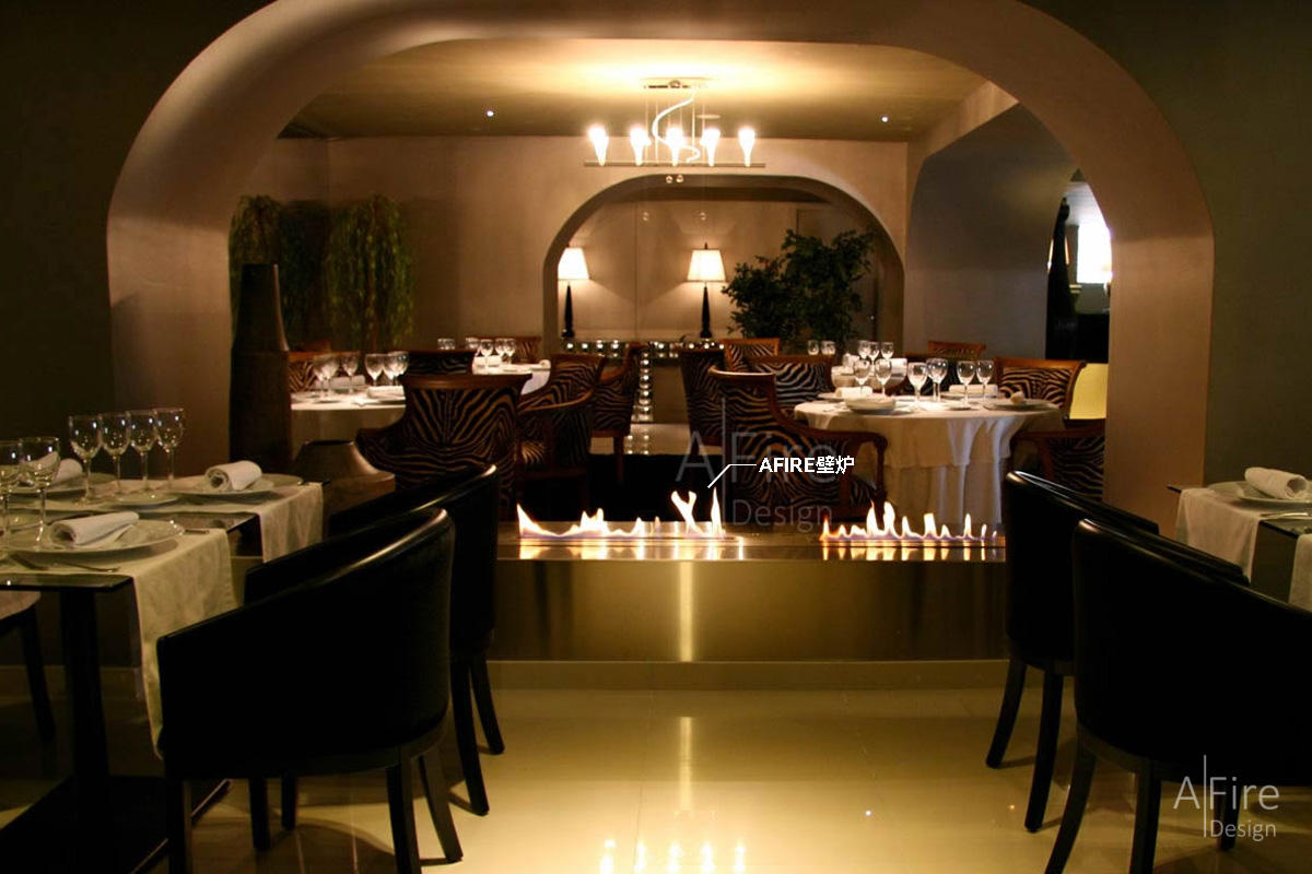 位置选择:酒精壁炉可以安装在房间的一角或墙壁一侧,既不影响顾客活动空间,又可以成为房间的亮点。