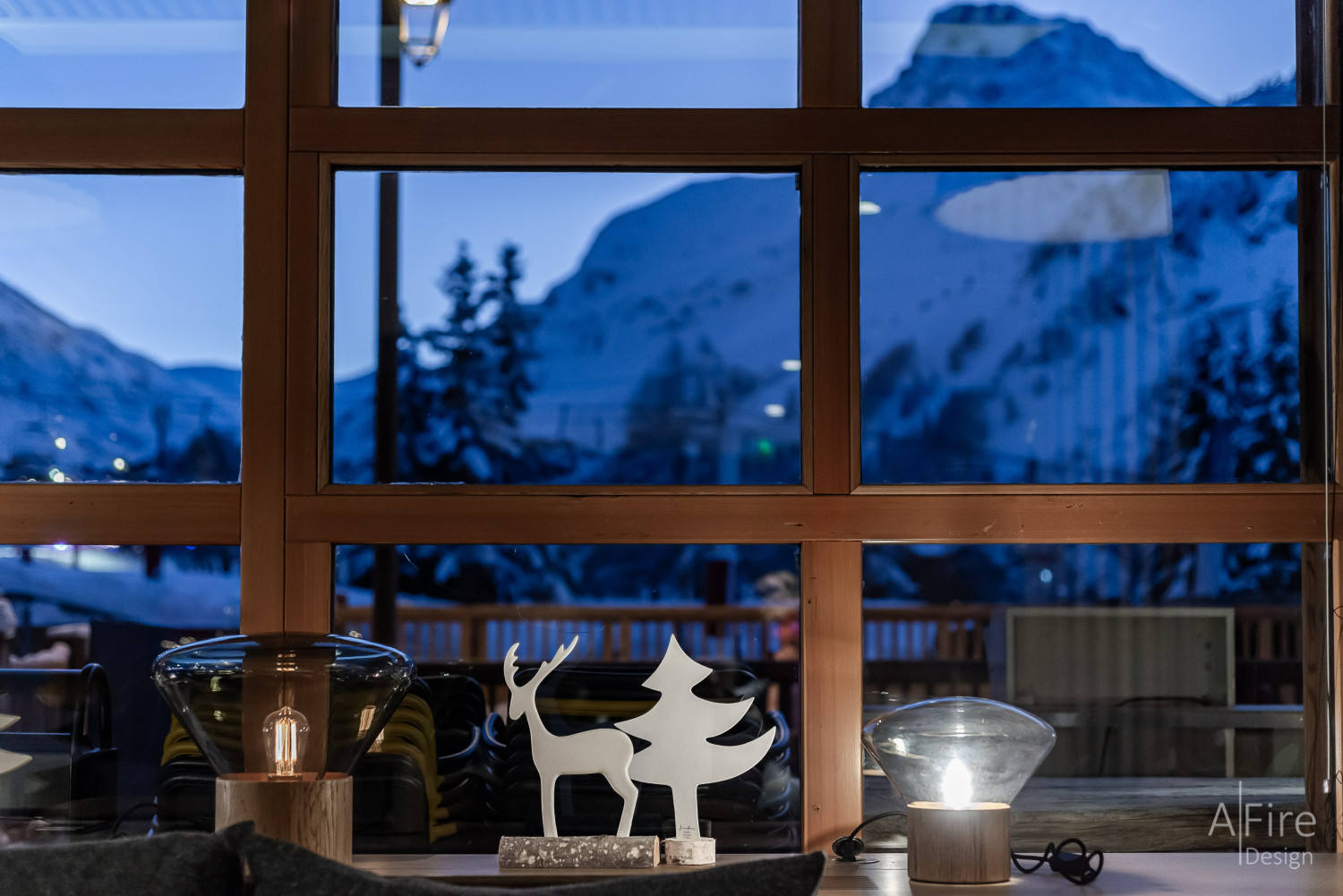 充满圣诞风情的Bar是夜晚必游之地。酒吧采用中性色调,大量应用了光线并不耀眼的吊灯、壁灯、台灯和装饰灯,整个空间的灯光低调而妩媚。一些几何图形的设计如镂空的墙壁、矩形的壁炉架和棱角分明的书架,增添了一些视觉趣味和秩序感。壁炉与门口的圣诞树相互衬托,节日氛围感瞬间拉满,柔软的地毯和沙发让人沉醉其中。背靠雪山,夜晚总是格外寒冷,但酒吧的每个细节都旨在给予客人身心的温暖。